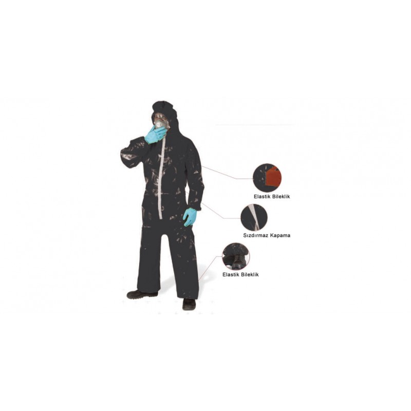 Bu tulum kullanıcıyı tehlikeli maddeler ve potansiyel kirlenmelerden koruma amaçlı üretilmştir. Sıvı kimyasallardan ve havadaki partiküllerden korur. Dikiş yerleri kaynak yöntemi ile kapatılarak tam sızdırmazlık sağlanmıştır.