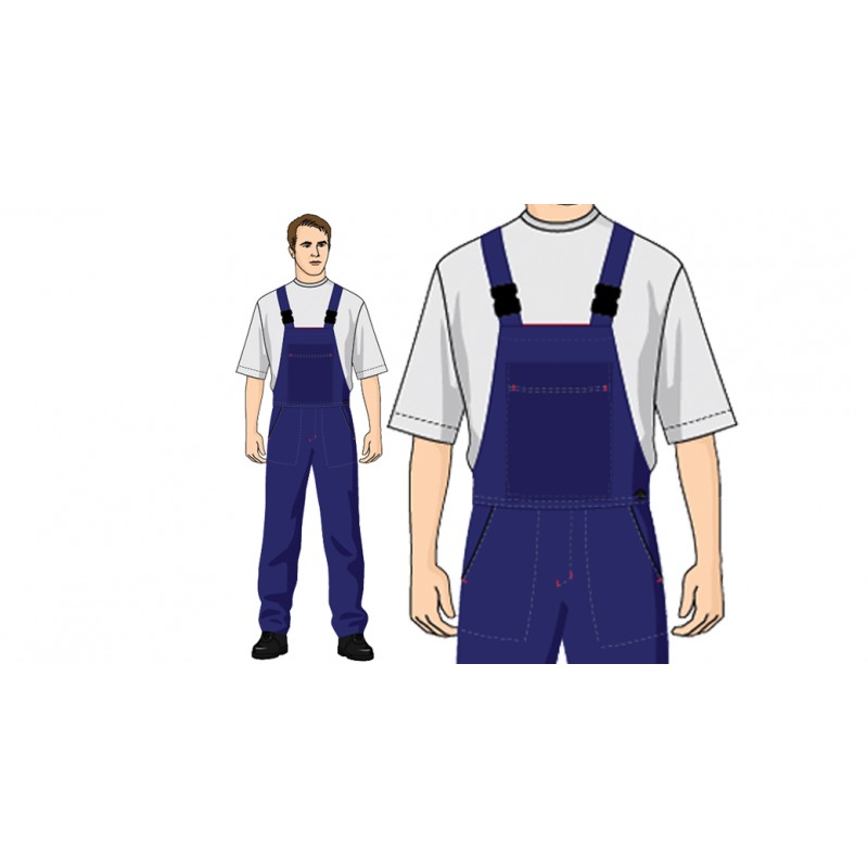 İş Tulumu Bel formu yanlardan düğme ile ayarlanabilir. Rahat hareket için askılık arkaları lastiklidir. Ön fermuarlıdır ve ön orta kısımda fermuarlı cep bulunur. Yanlarda üstten cepler mevcuttur. 16/12 Gabardin %100 pamuk kumaştan üretilmiştir. Tüm cep ağızları ve çatma yerleri punterez dikiş ile güçlendirilmiştir.