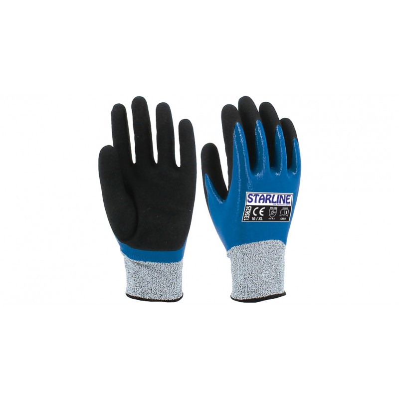 Bu eldivenler kuru veya ıslak ortamlarda nesneleri tutmak için güçlü kavrama özelliklerine sahiptir. Sahip olduğu HDPE+Fiberglas astarı sayesinde kesiklere, yıpranmalara ve delinmelere karşı koruma sağlar. Siyah nitril kaplaması sayesinde sıvı geçirmezliği ve üstün özellikler sunmaktadır. İkinci kat siyah nitril kısmı zımpara yüzeyi gibi kumludur; kaydırma yapmaz. Eldivenin tam kaplamalı olması sıvıları içeri sızmasını engeller.